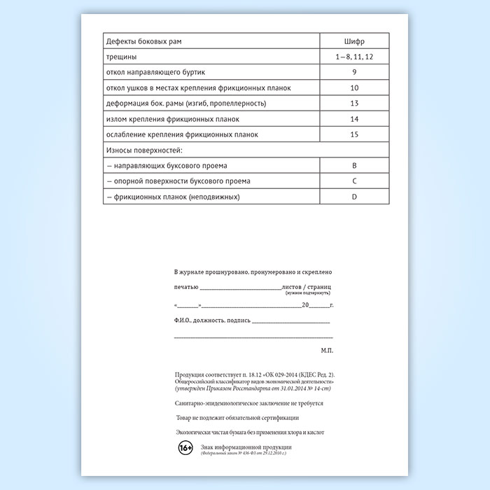 Журнал учета результатов осмотра и дефектоскопирования боковых рам тележек грузовых вагонов в Кызыле купить