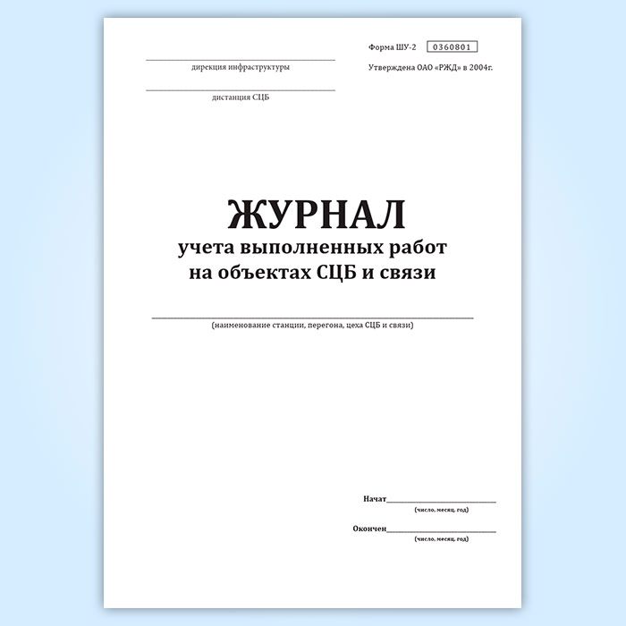 Журнал учета выполненных работ на объектах СЦБ и связи (форма Шу-2) в Кызыле купить