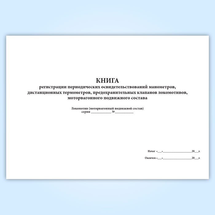Книга регистрации периодических освидетельствований манометров, дистанционных термометров, предохранительных клапанов локомотивов, моторвагонного подвижного состава (форма ТКУ-8) в Кызыле купить