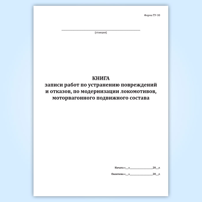 Книга записи работ по устранению повреждений и отказов, по модернизации локомотивов, моторвагонного подвижного состава (форма ТУ-30) в Кызыле купить