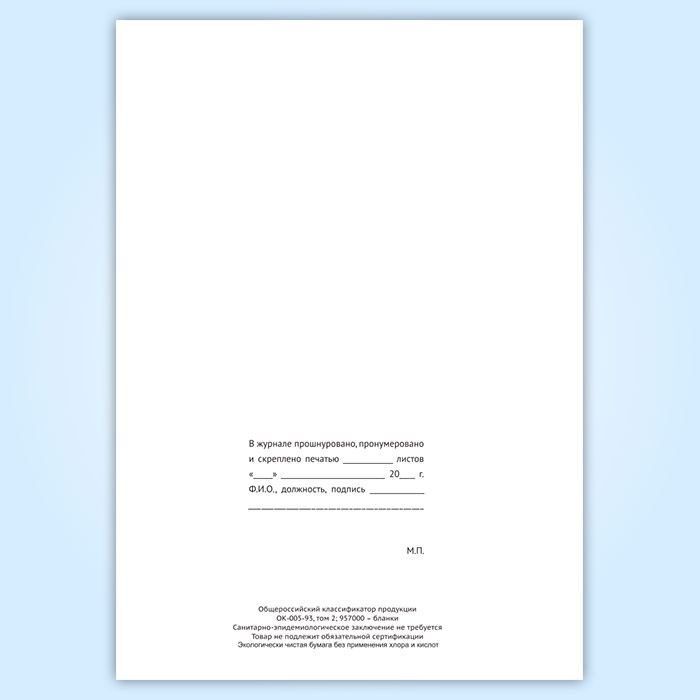 Вы получаете печатную продукцию прошнурованной и c местом для вашей печати в соответствии с действующими нормативными документами: