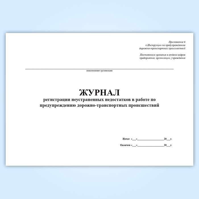 Журнал регистрации неустраненных недостатков в работе по предупреждению дорожно-транспортных происшествий в Кызыле купить