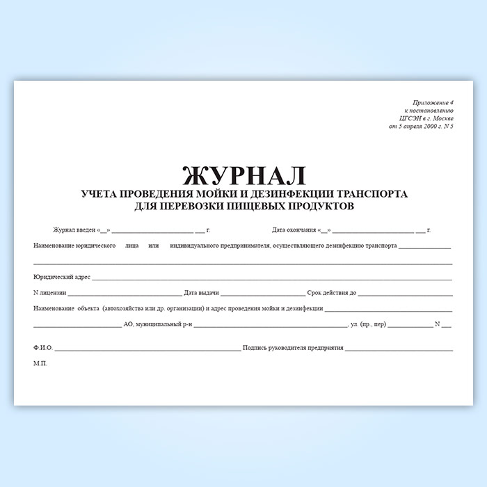Журнал учета проведения мойки и дезинфекции транспорта для перевозки пищевых продуктов в Кызыле купить
