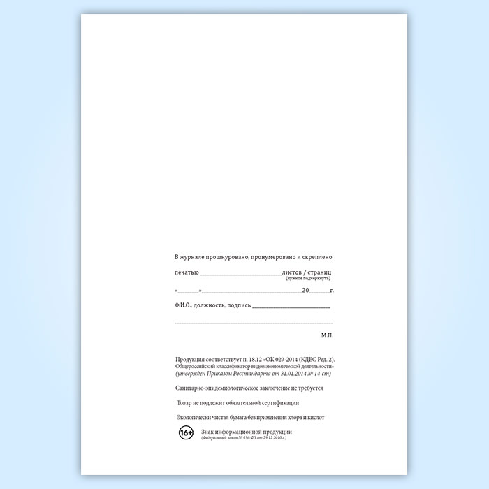 Вы получаете печатную продукцию прошнурованной и c местом для вашей печати в соответствии с действующими нормативными документами: