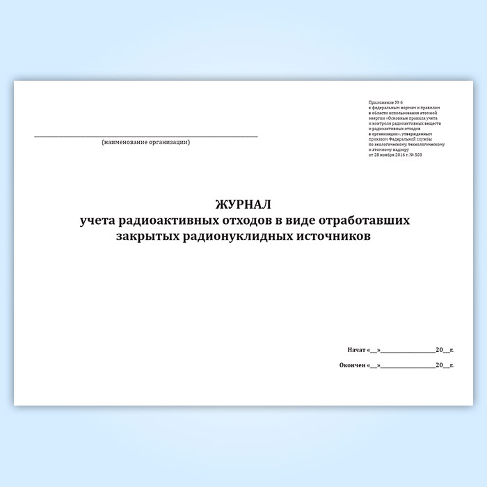 Журнал учета радиоактивных отходов в виде отработавших закрытых радионуклидных источников в Кызыле купить