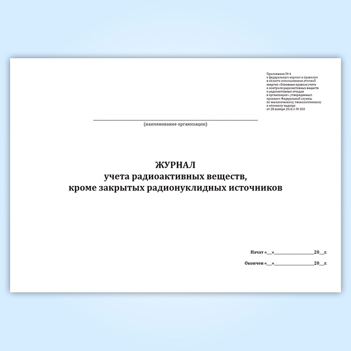 Журнал учета радиоактивных веществ, кроме закрытых радионуклидных источников в Кызыле купить