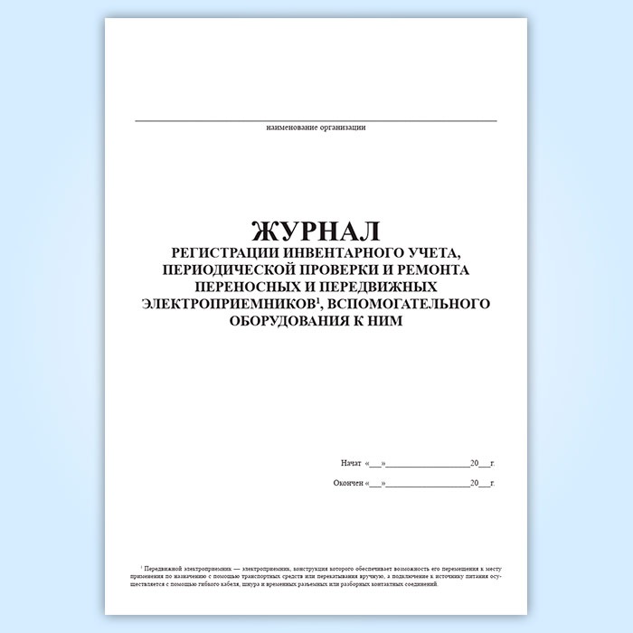 Журнал регистрации инвентарного учета, периодической проверки и ремонта переносных и передвижных электроприемников, вспомогательного оборудования к ним в Кызыле купить