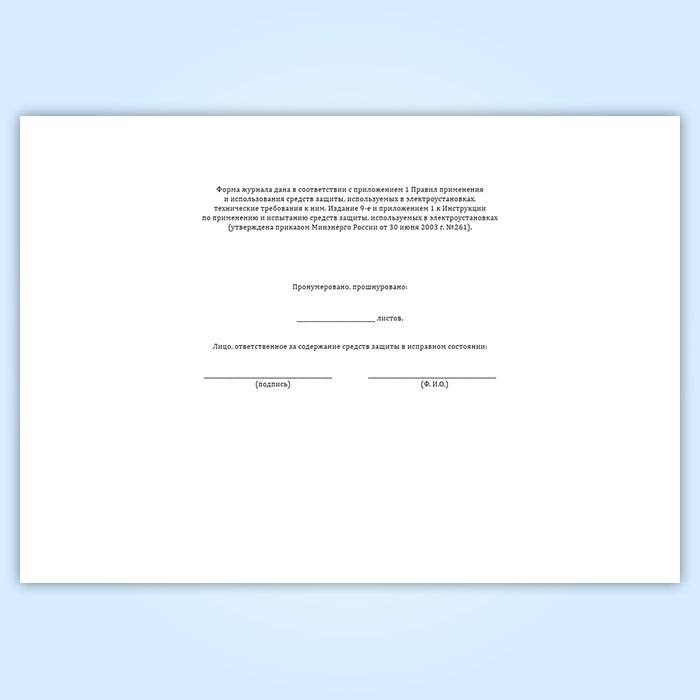 Журнал учета и содержания средств защиты (используемых в электроустановках) в Кызыле купить