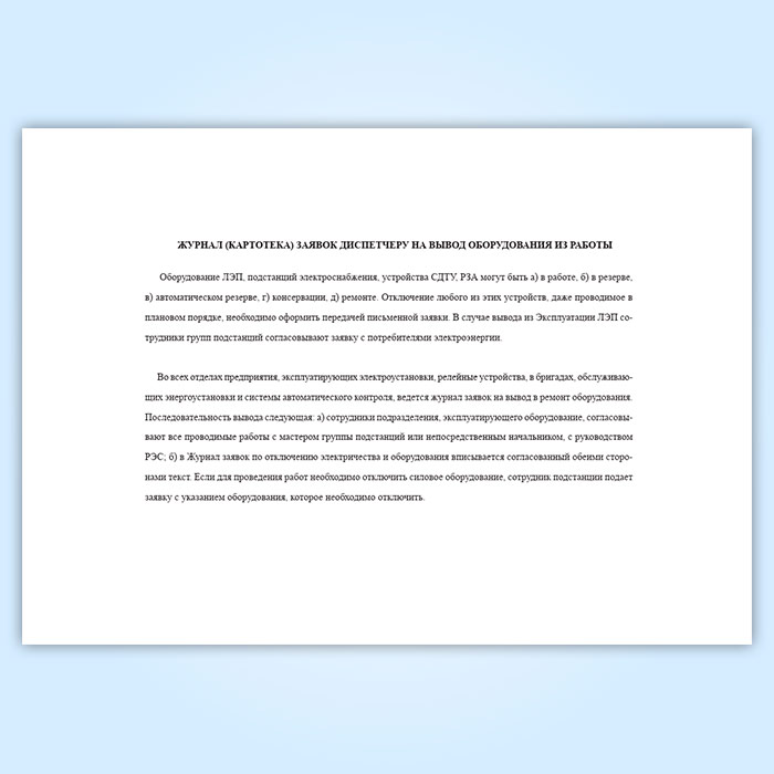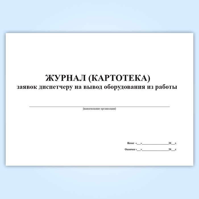 Журнал (картотека) заявок диспетчеру на вывод оборудования из работы в Кызыле купить