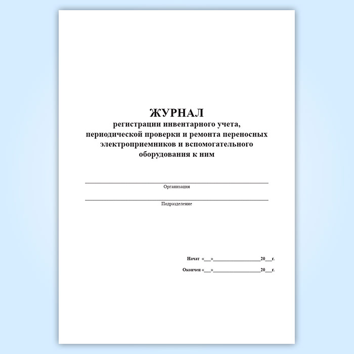 Журнал регистрации инвентарного учета, периодической проверки и ремонта переносных электроприемников и вспомогательного оборудования к ним в Кызыле купить