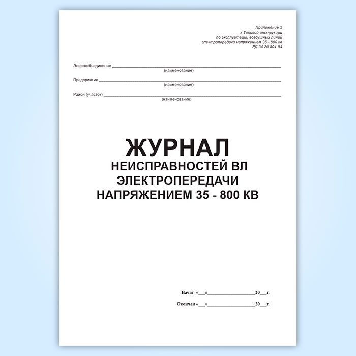 Журнал учета работ на ВЛ электропередачи напряжением 35-800 квВ в Кызыле купить