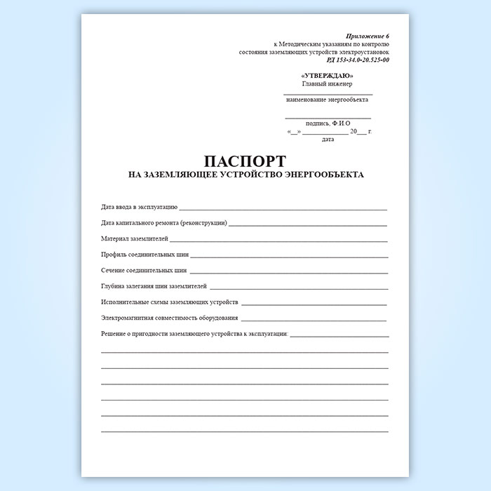 Паспорт на заземляющее устройство энергообъекта в Кызыле купить