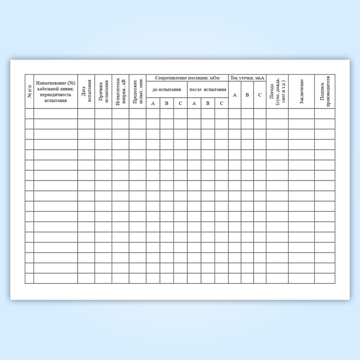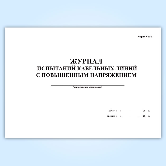 Журнал испытаний кабельных линий с повышенным напряжением (форма № 20-Э) в Кызыле купить