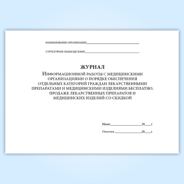Журнал информационной работы с медицинскими организациями о порядке обеспечения отдельных категорий граждан лекарственными препаратами и медицинскими изделиями бесплатно, продаже лекарственных препаратов и медицинских изделий со скидкой в Кызыле купить