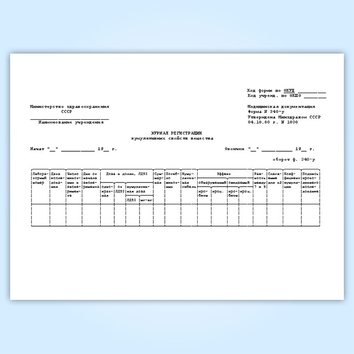 Журнал регистрации кумулятивных свойств вещества (форма № 340-у) в Кызыле купить