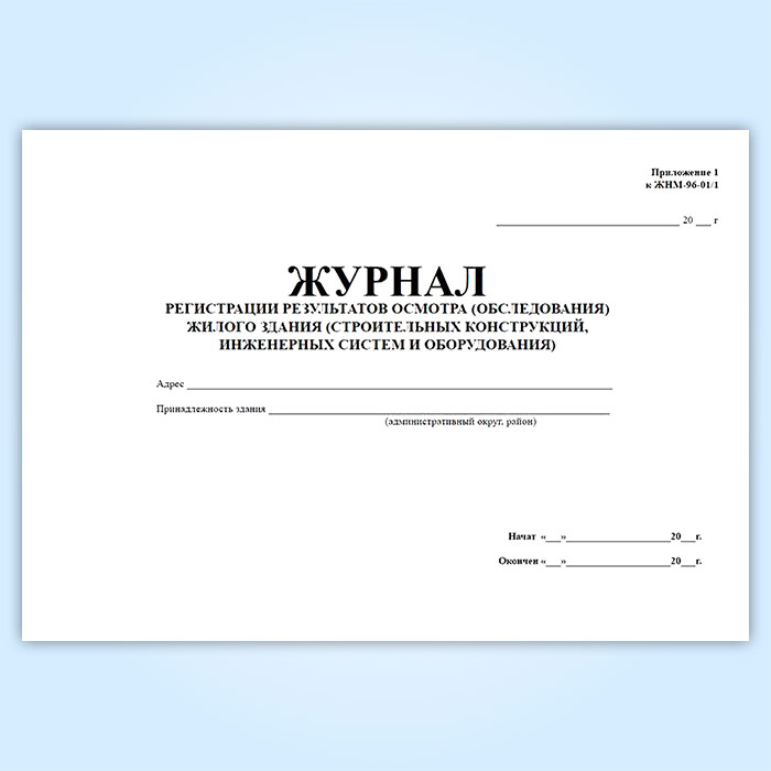 Журнал регистрации результатов осмотра (обследования) жилого здания (строительных конструкций, инженерных систем и оборудования). (Приложение к форме ЖНМ-96-01/1) в Кызыле купить