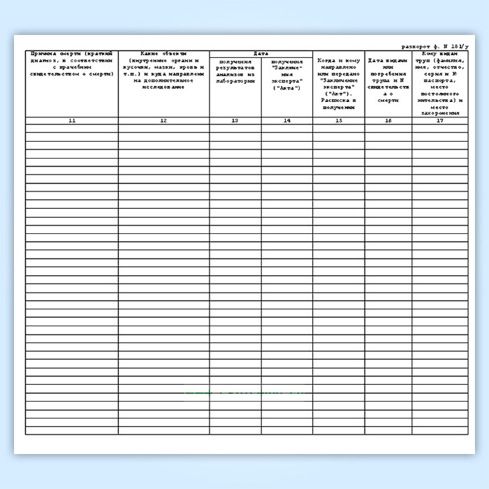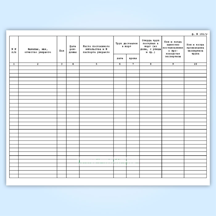 Журнал регистрации трупов в судебно-медицинском морге (форма 181у) в Кызыле купить