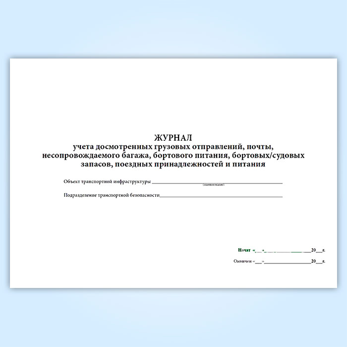 Журнал учета досмотренных грузовых отправлений, почты несопровождаемого багажа, бортового питания, бортовых/судовых запасов, поездных принадлежностей и питания в Кызыле купить