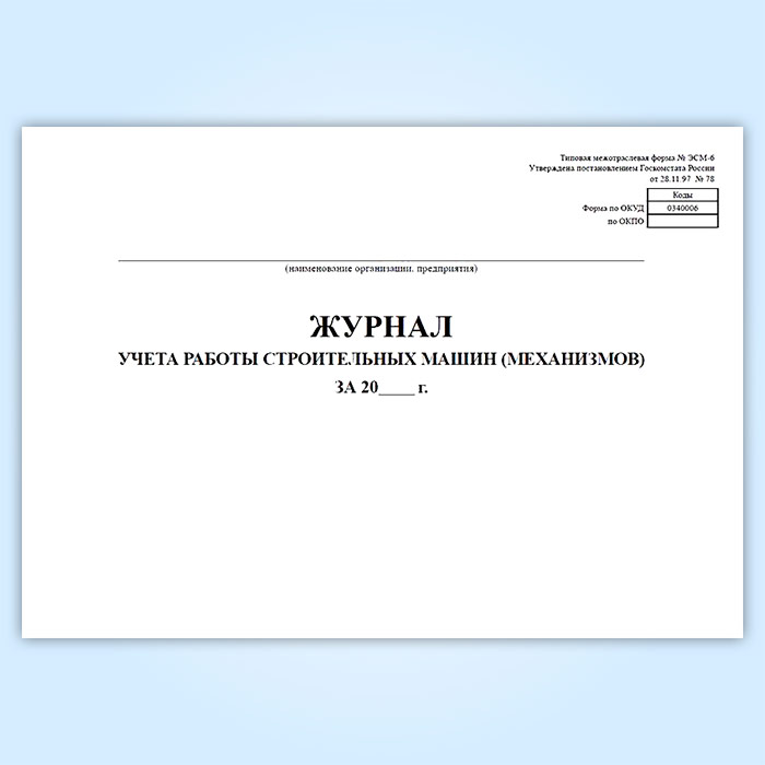 Журнал учета работы строительных машин (механизмов) (форма ЭСМ-6) в Кызыле купить