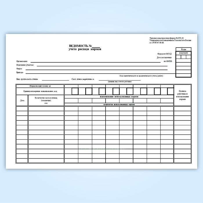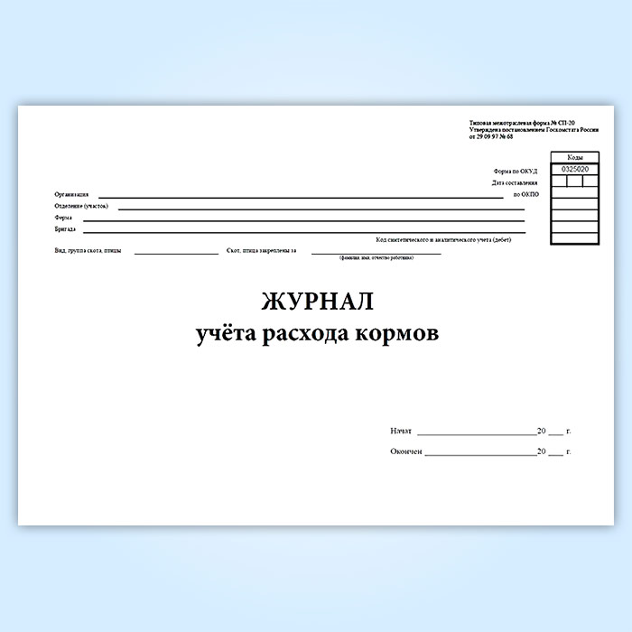 Журнал учета расхода кормов (форма № СП-20) в Кызыле купить