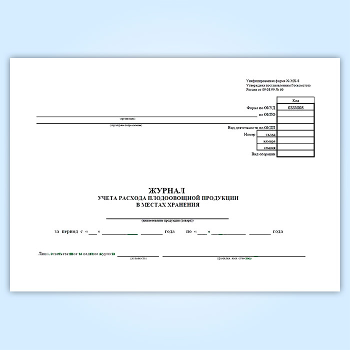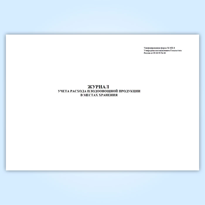 Журнал учета расхода плодоовощной продукции в местах хранения (форма МХ-8) в Кызыле купить