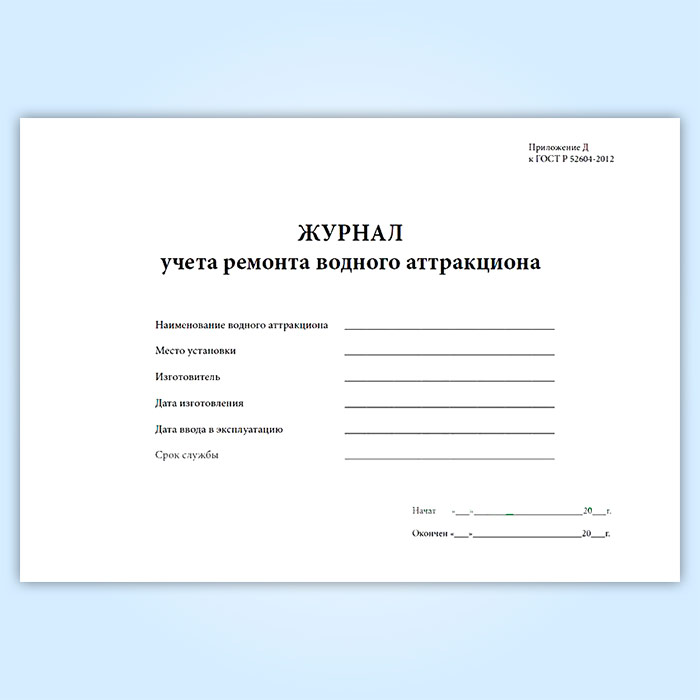 Журнал учета ремонта водного аттракциона в Кызыле купить