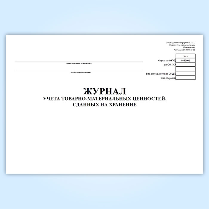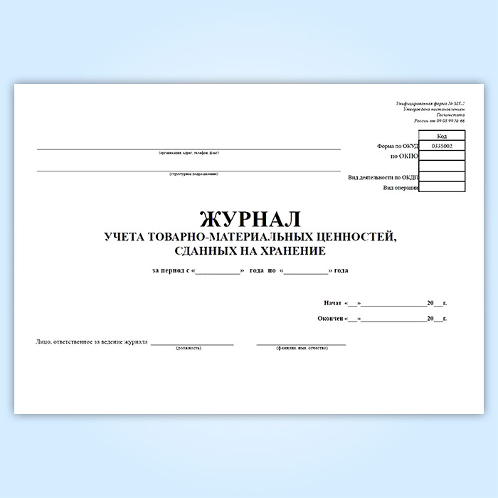 Журнал учета товарно-материальных ценностей, сданных на хранение (форма № МХ-2) в Кызыле купить