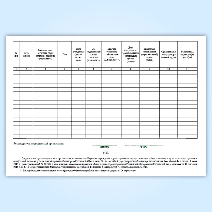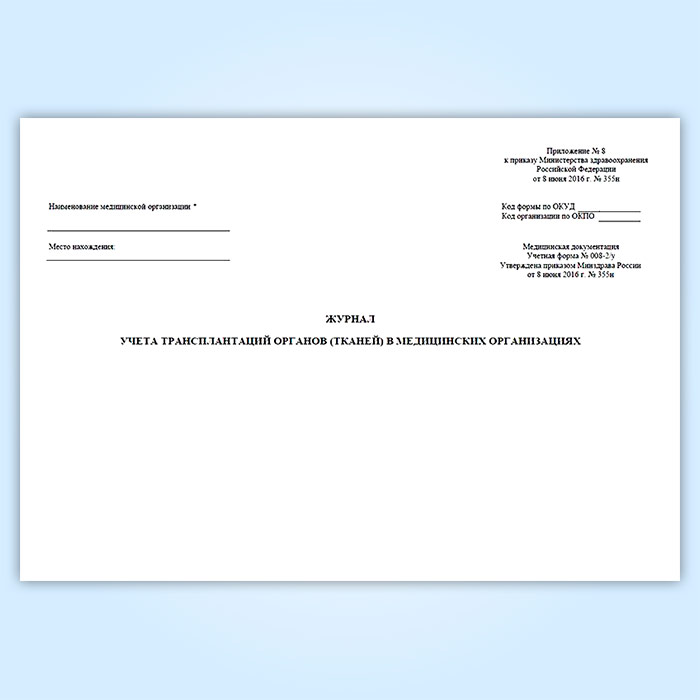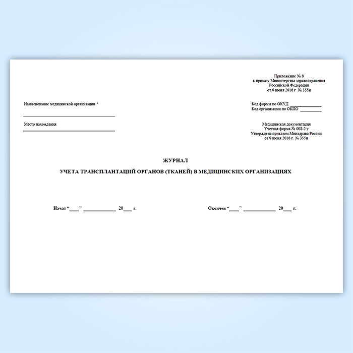 Журнал учета трансплантаций органов (тканей) в медицинских организациях (форма № 008-2/у) в Кызыле купить