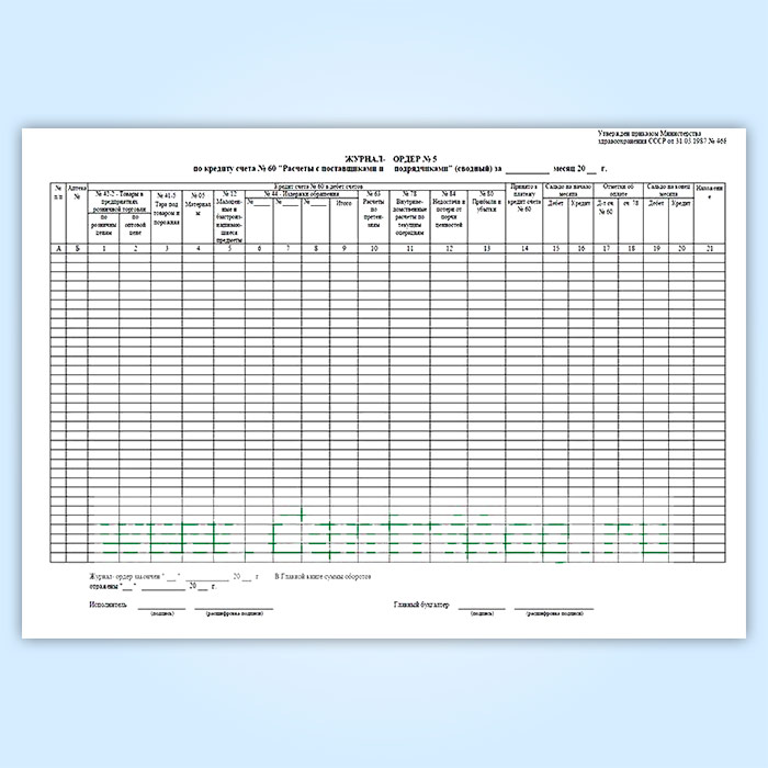 Журнал-ордер № 5 по кредиту счета № 60 «Расчеты с поставщиками и подрядчиками» (сводный) в Кызыле купить