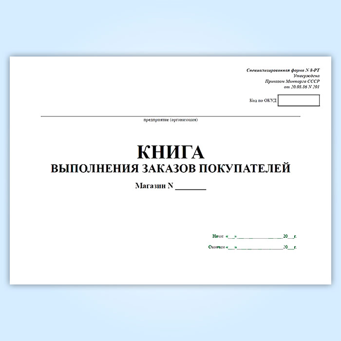 Книга выполнения заказов покупателей (специализированная форма № 8-РТ) в Кызыле купить