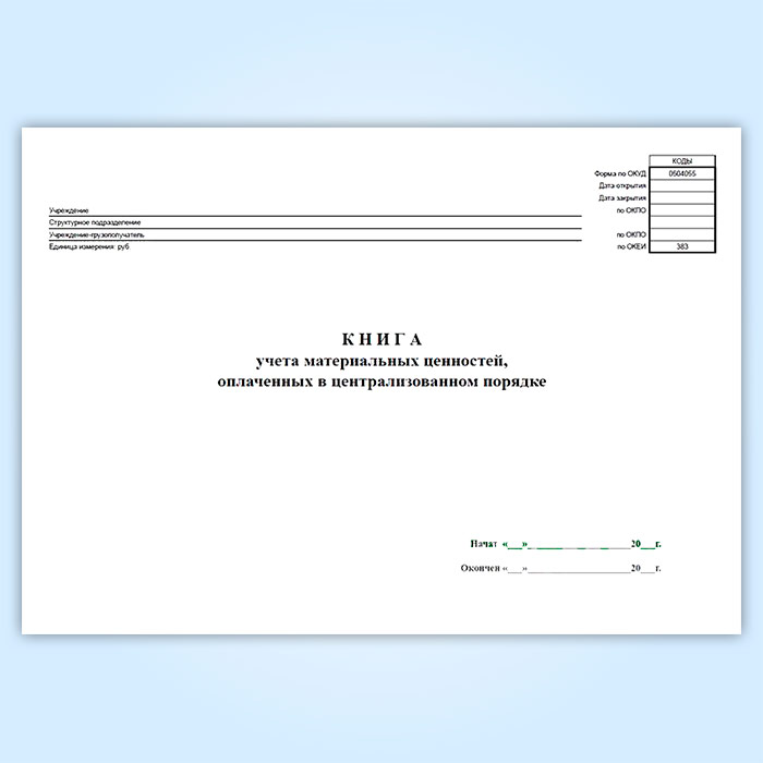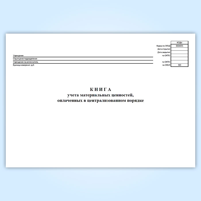 Книга учета материальных ценностей, оплаченных в централизованном порядке (код формы 0504055) в Кызыле купить