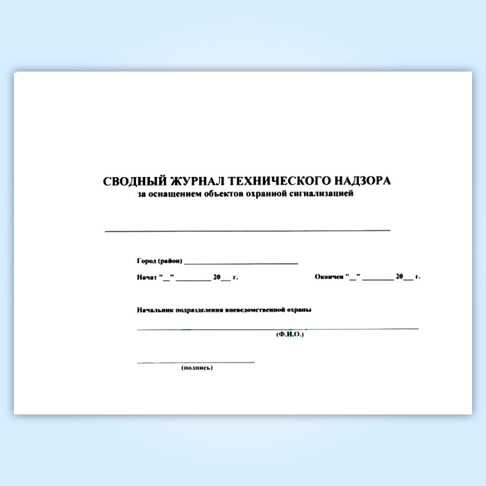 Сводный журнал технического надзора за оснащением объектов охранной сигнализацией в Кызыле купить