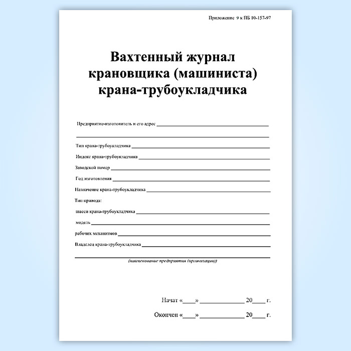 Вахтенный журнал крановщика (машиниста) крана-трубоукладчика в Кызыле купить