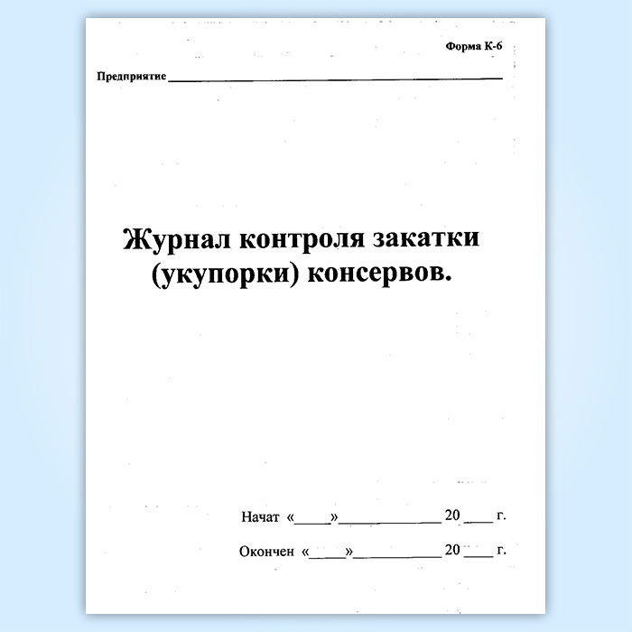 Журнал контроля закатки (укупорки) консервов (форма К-6) в Кызыле купить