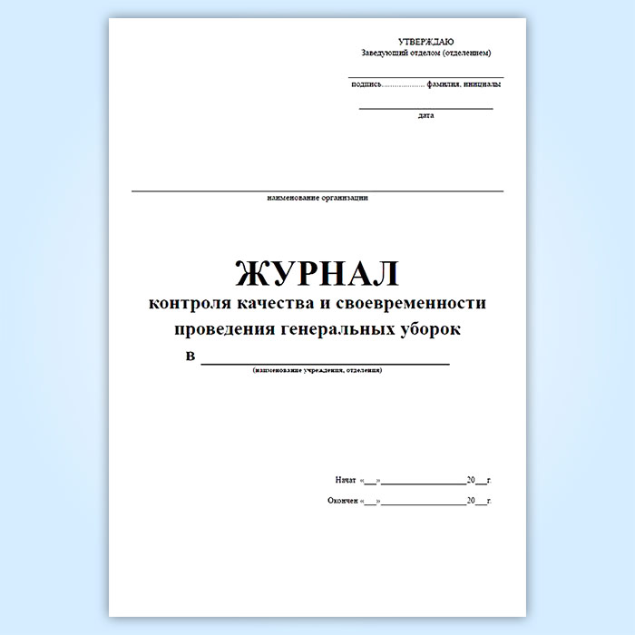 Журнал контроля качества и своевременности проведения генеральных уборок в Кызыле купить
