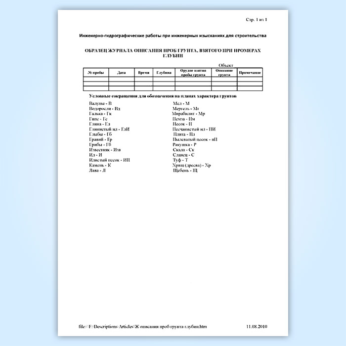 Журнал описания проб грунта, взятого при промерах в Кызыле купить