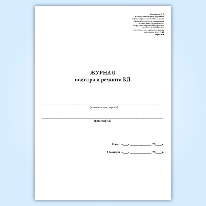 Журнал осмотра и ремонта канатной дороги. Несущий канат (форма № 1) в Кызыле купить