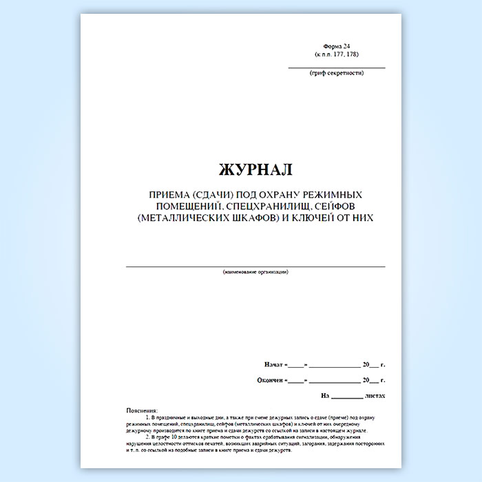 Журнал приема (сдачи) под охрану режимных помещений, спецхранилищ, сейфов (металлических шкафов) и ключей от них в Кызыле купить