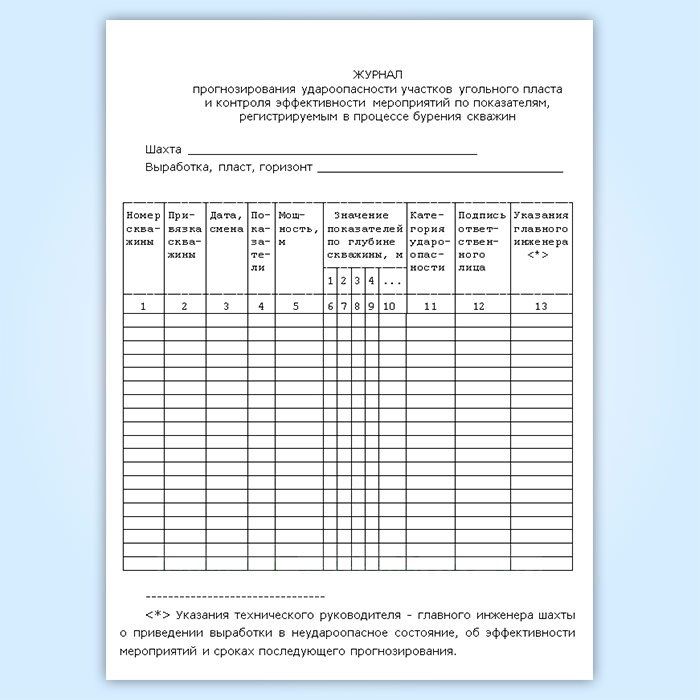 Журнал прогнозирования удароопасности участков угольного пласта и контроля эффективности мероприятий по показателям, регистрируемым в процессе бурения скважин в Кызыле купить