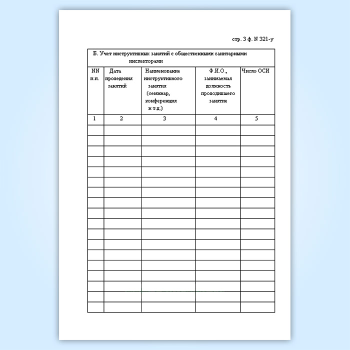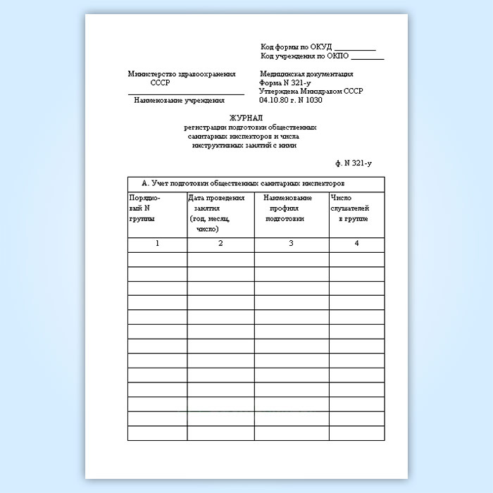 Журнал регистрации подготовки общественных санитарных инспекторов и числа инструктивных занятий с ними (форма № 321-у) в Кызыле купить