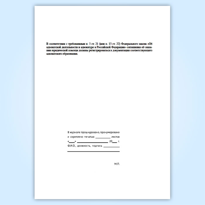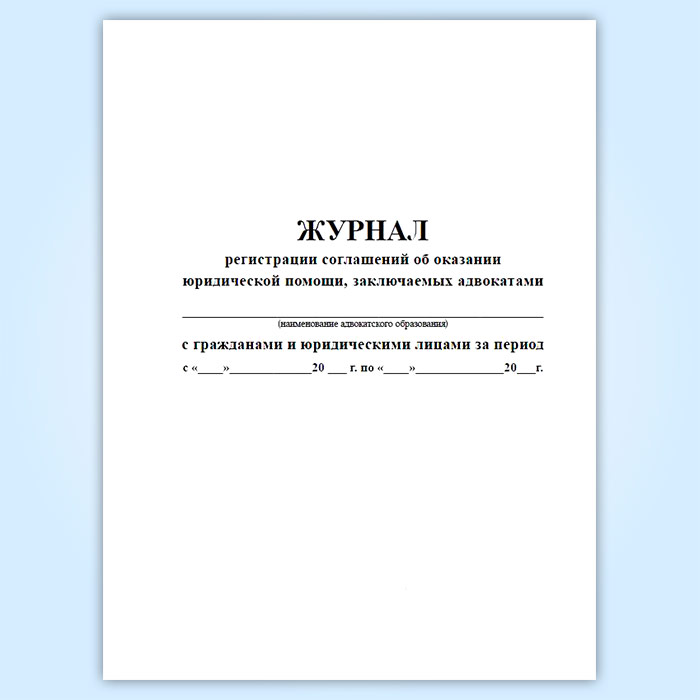 Журнал регистрации соглашений об оказании юридической помощи, заключаемых адвокатами с гражданами и юридическими лицами в Кызыле купить