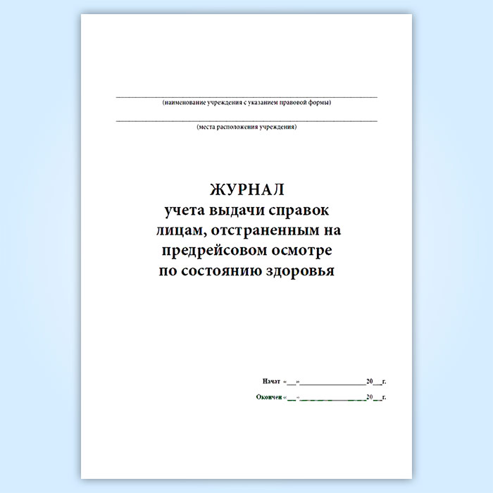 Журнал учета выдачи справок лицам, отстраненным на предрейсовом осмотре по состоянию здоровья в Кызыле купить