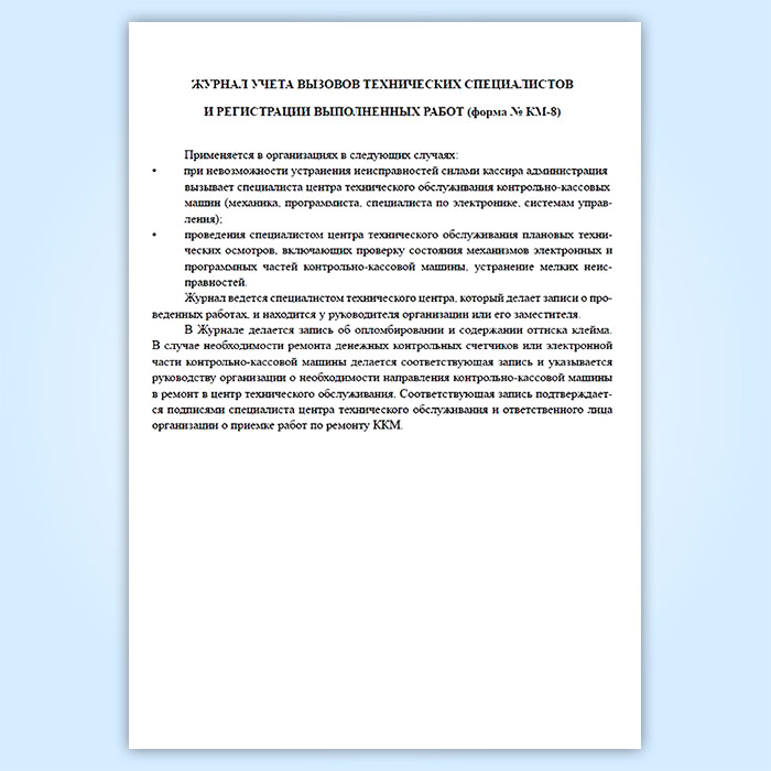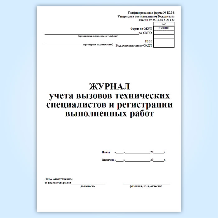 Журнал учета вызовов технических специалистов и регистрации выполненных работ (форма КМ-8) в Кызыле купить