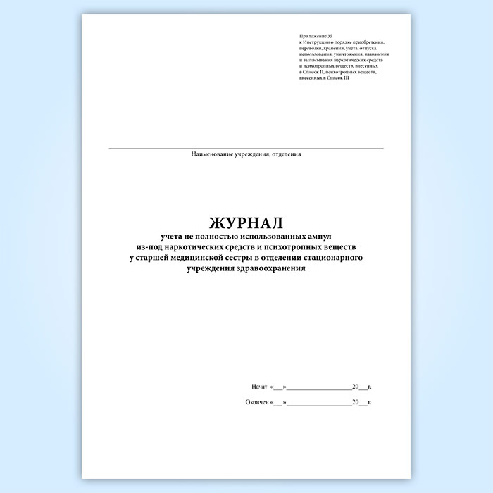 Журнал учета не полностью использованных ампул из-под наркотических средств и психотропных веществ у старшей медицинской сестры в отделении стационарного учреждения здравоохранения в Кызыле купить