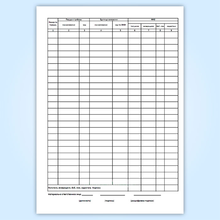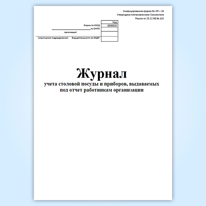 Журнал учета столовой посуды и приборов, выдаваемых под отчет работникам организации (форма № ОП-19) в Кызыле купить