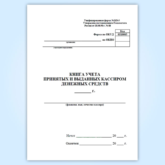 Книга учета принятых и выданных кассиром денежных средств (форма № КО-5) в Кызыле купить