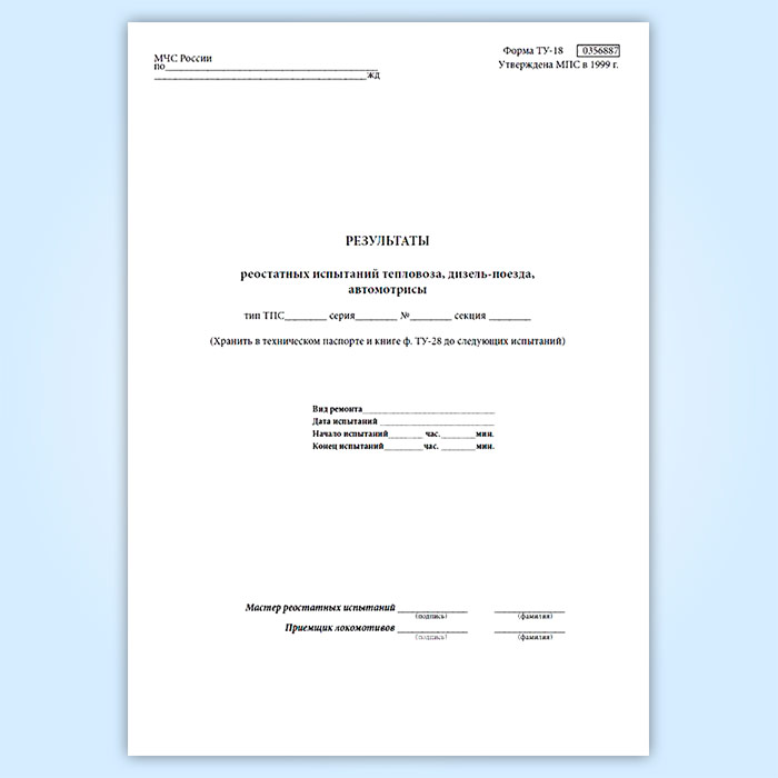 Результаты реостатных испытаний тепловоза, дизель-поезда, автомотрисы (форма ТУ-148) в Кызыле купить