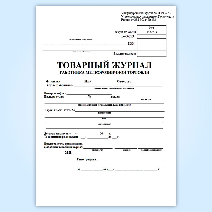 Товарный журнал работника мелкорозничной торговли (форма № ТОРГ-23) в Кызыле купить