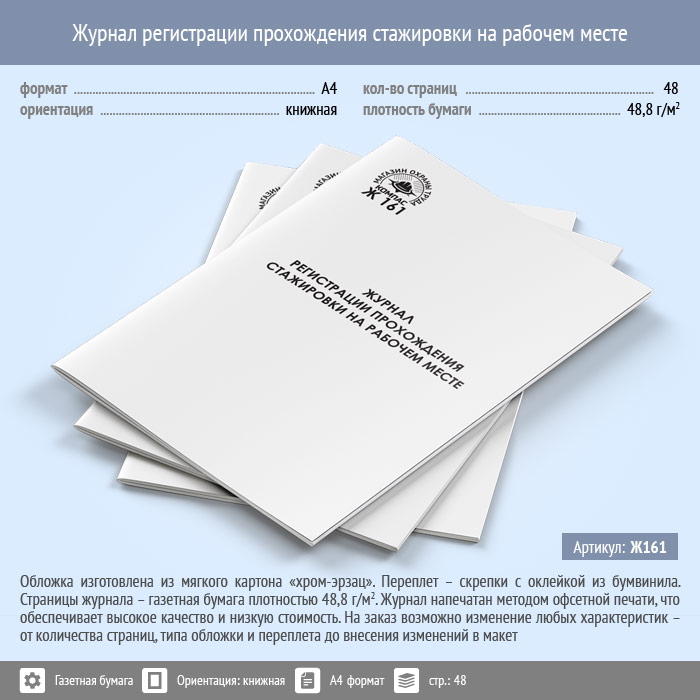 Журнал регистрации прохождения стажировки на рабочем месте (48 стр., Ж161) в Кызыле купить