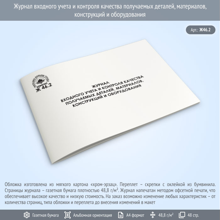 Журнал входного учета и контроля качества получаемых деталей, материалов, конструкций и оборудования (Ж46.2, 48 стр.) в Кызыле купить